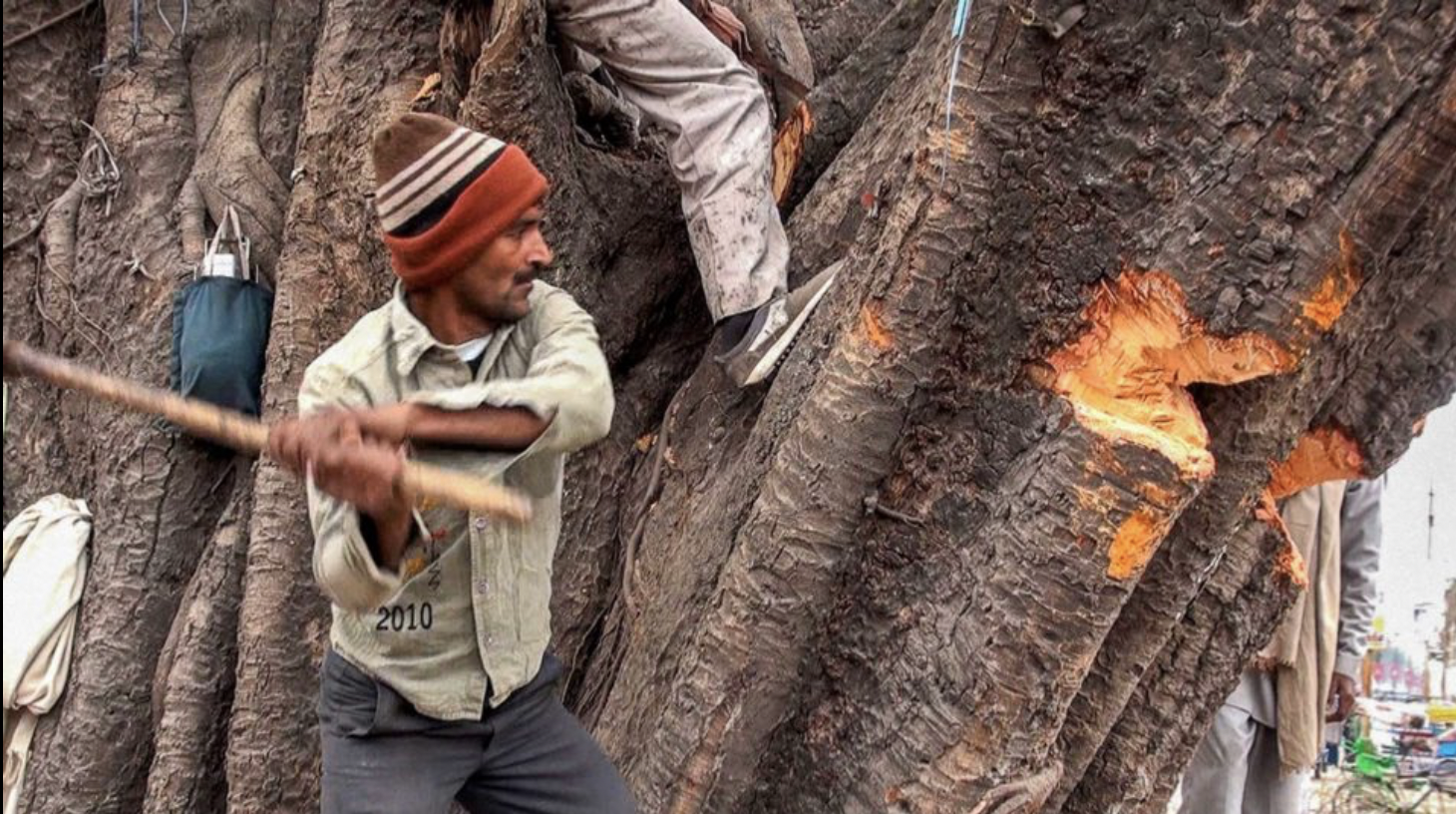Travelling alone through Northern India, Sonia Feldmeier witnesses the spectacular felling of a tree: An ancient, holy PEEPUL TREE is being cut down by seven lumbermen using handsaws and axes. Over several days, she films their undertaking. She is in the thick of the activity, but the language barrier impedes verbal communication. From this subjective experience, she creates audio portraits that give each lumberjack their own musical presence in the film.